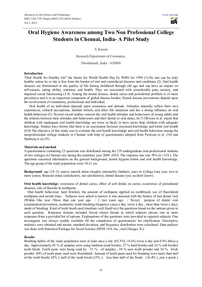 · 10 Popular Dental Hygiene Essay Topics 1. How does acid affect the tooth enamel of older people? 2. Why is dental hygiene different in modern countries? 3. Can tooth enamel be damaged by eating? 4. The main factors are affecting bleeding gums. 5. Words. 3 Pages. Open Document. Essay Sample Check Writing Quality. Growing up most oral hygiene habits are developed early in life, it is very important that from day one children, teenagers, as well as adults create and practice good oral hygiene habits to · Oral health is an essential to overall well-being and relates to the quality of life. Childhood dental caries significantly contributes to the burden of pain and is associated with a marked decrease in the quality of life and general health